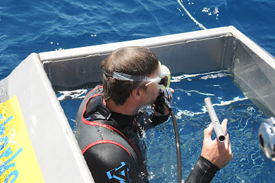Dan about to go down armed with a baton to fend off any unwelcome shark attention.